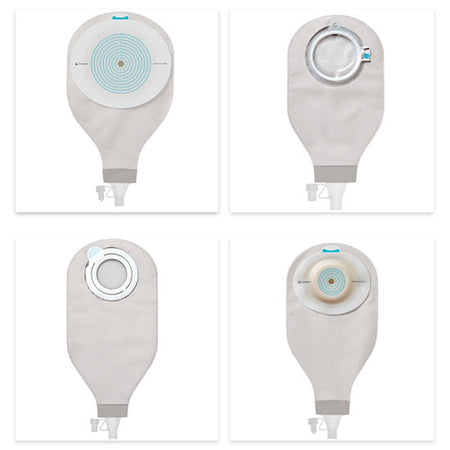 SenSura Mio 1-Piece Drainable with soft outlet features pouches that are opaque with a tuck-away option to keep the outlet from rubbing on the wearer's leg, or transparent pouches with a scale printed on the pouch to help estimate output amount.