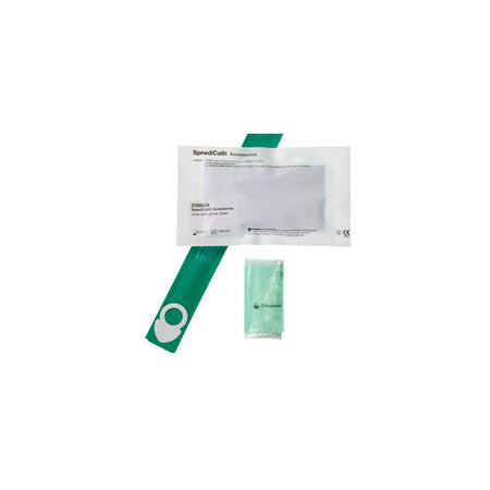 - SpeediCath Standard intermittent catheter with one pair of non-latex exam gloves, one waterproof drape, two iodine prep pads and urine collection bag.