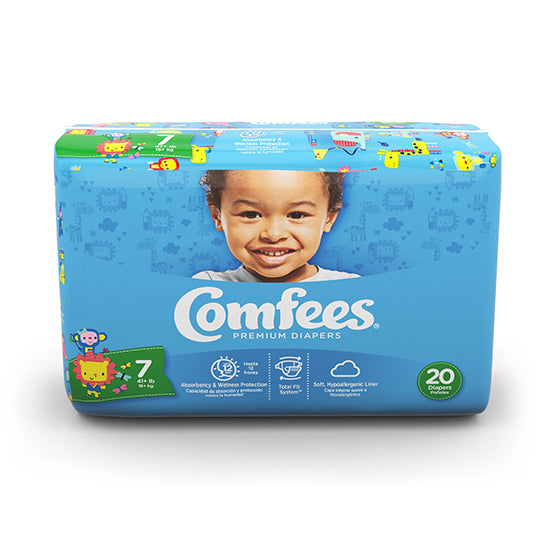 - Comfees® soft hypoallergenic liner, soft outer cover, and perfume and latex free design protect and promote the health of baby's delicate skin.