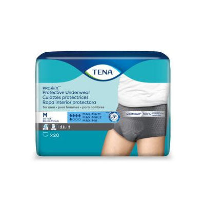 Essity TENA Proskin Maximum Absorbency Underwear for Men, Small/Medium, 34" to 44" Waist.