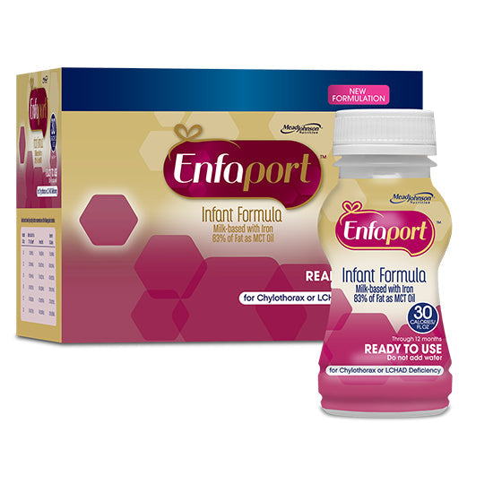 Enfaport infant formula is designed just for babies with Chylothorax or LCHAD deficiency.